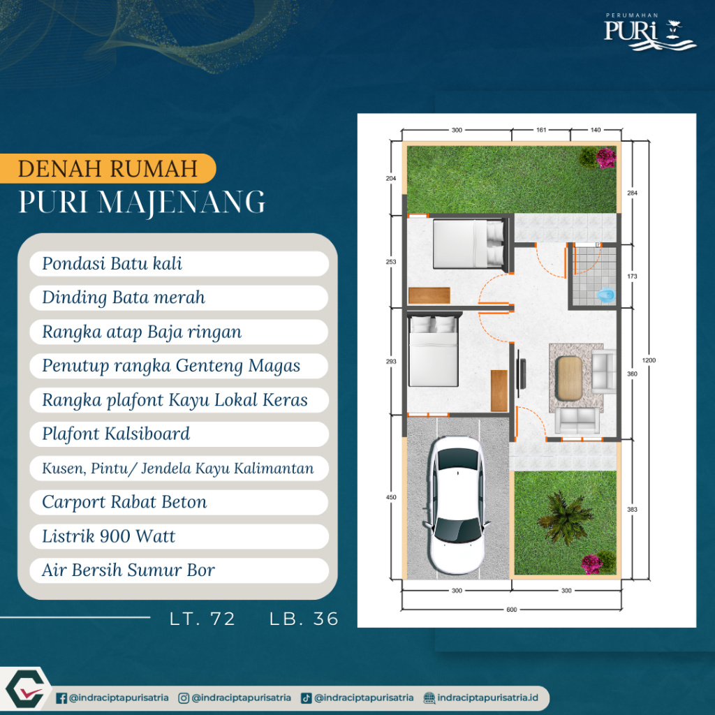 Perumahan Puri Majenang di Majenang dibangun dengan menggunakan bahan bangunan berkualitas tinggi, menjamin kekokohan dan daya tahan rumah. Dari fondasi hingga atap, setiap detail konstruksi dikerjakan dengan teliti, menciptakan lingkungan hunian yang aman dan nyaman bagi setiap penghuninya.